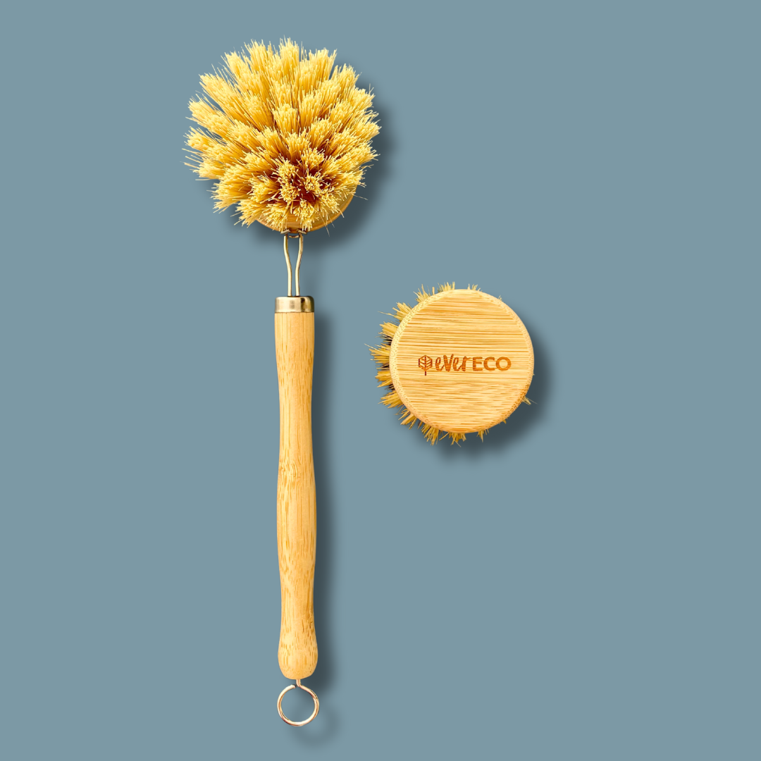 Scrub smarter with this sustainable sink-side essential! This handy bundle includes the Ever Eco Bamboo Dish Brush and a Replacement Head, providing everything you need to tackle dishes in a low-tox, zero-waste way. Made from responsibly sourced bamboo and plant fibre bristles, this brush is tough on grime yet gentle on the planet. When the bristle head wears out, simply replace it without having to toss the entire brush. It's perfect for anyone looking to reduce kitchen waste without sacrificing performance. This product is practical, eco-friendly, and stylish enough to keep on display!
